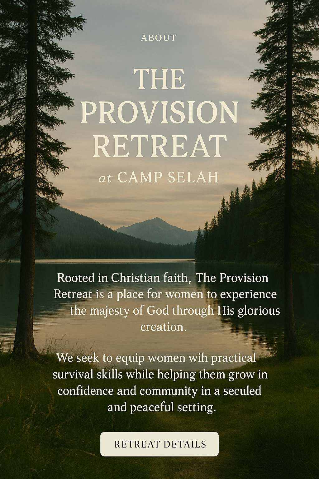 Explore God’s promises and provisions while learning practical emergency preparedness and outdoor survival skills. This retreat combines spiritual reflection with hands-on learning for personal growth and confidence in God’s care.